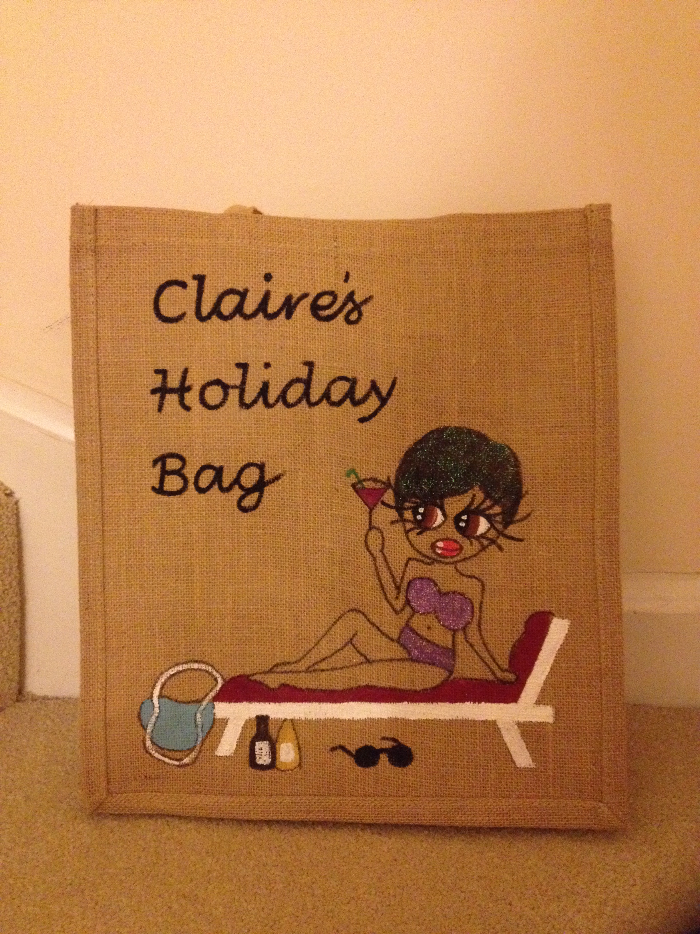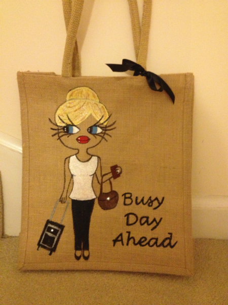 My bags are made from high quality, ethical materials and have a waterproof lining. Every bag is unique as it is hand-painted by me. They are ideal for everyday use, i.e. for carrying those extra items to work in, popping out to the shops or to add a bit of glitz and glamour to your outfit. My fabulous “Off to …….” range beach bags are hot favorites at this time of year, great for those of you ladies that want to add a bit of glamour to your holiday wardrobe. I also do “off shopping, off to school, off to the allotment, off to bingo, off on holiday, off to work, off to Uni, off to college, and off to New York or any other destination of your choice. I always love doing a new design.